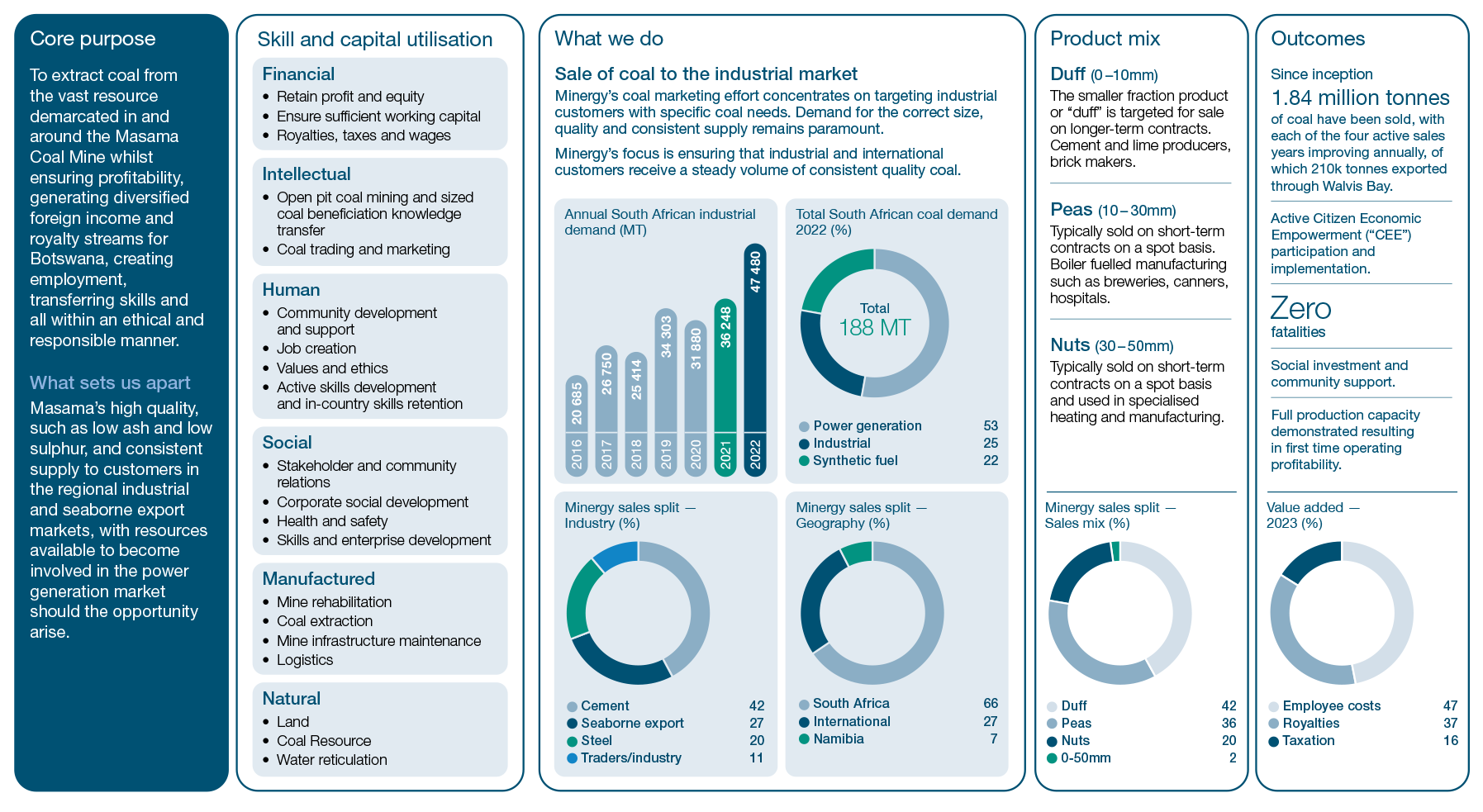 Minergy can guarantee sustainability by utilising the diverse set of skills in conjunction, with consistent quality and size of coal resource, with our business model and sales strategy.